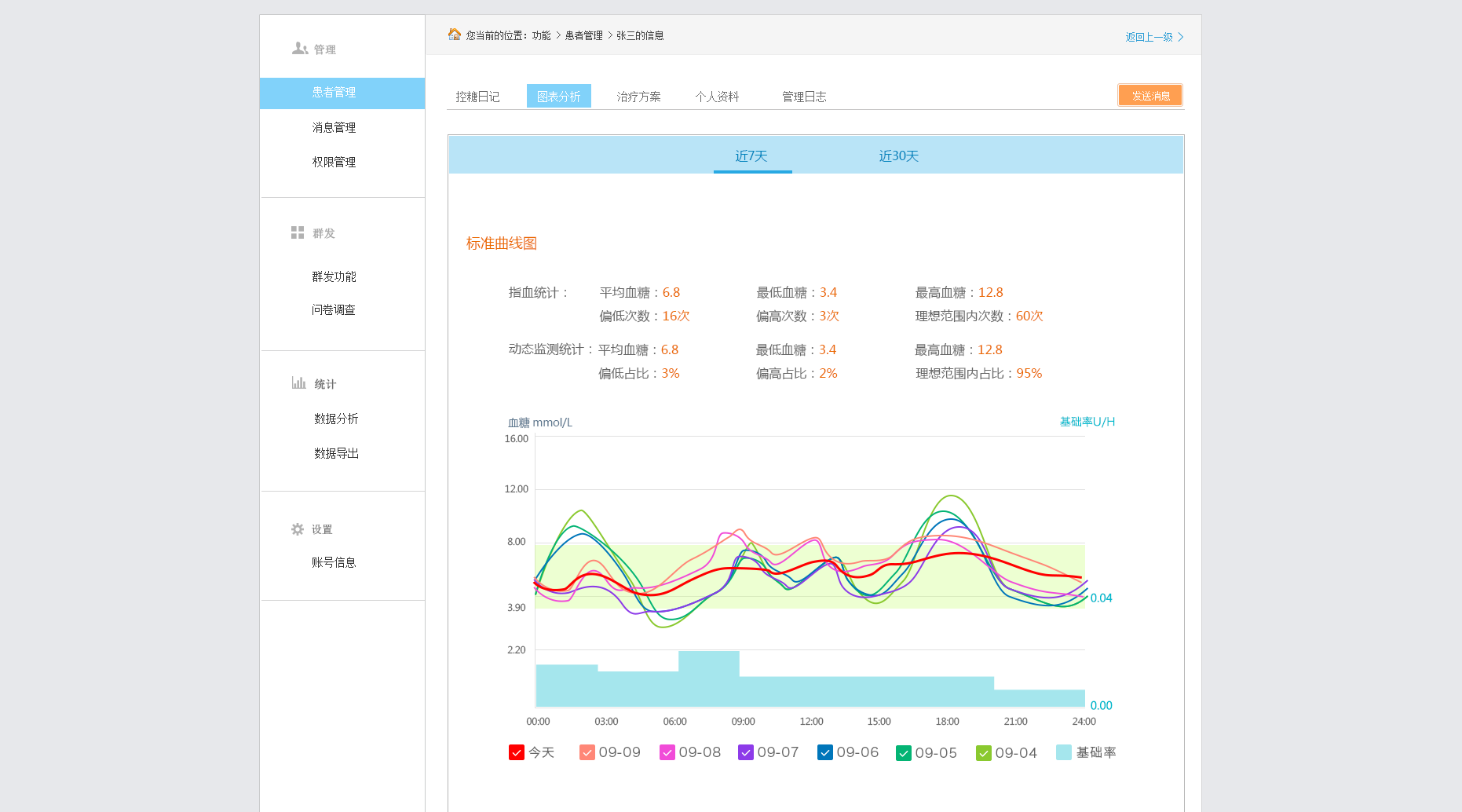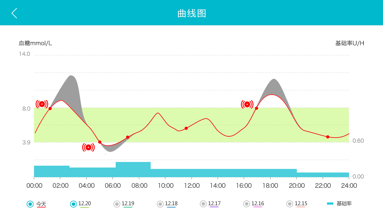 蓝色区域:胰岛素泵基础率柱状图