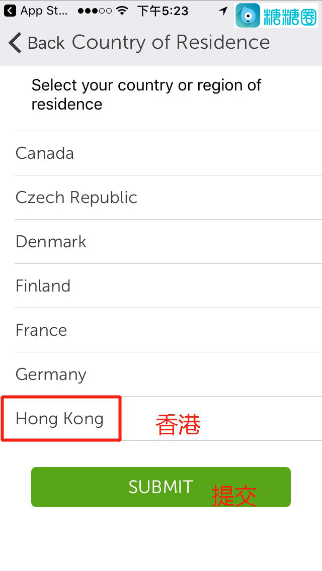 7.第一次新建用户需要选择自己所在地区,我们可以选择香港;然后填写你的信息并提交;