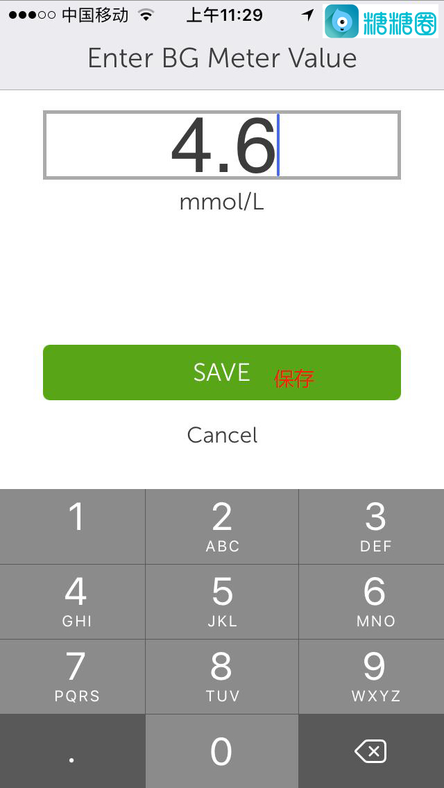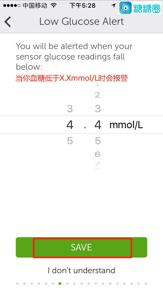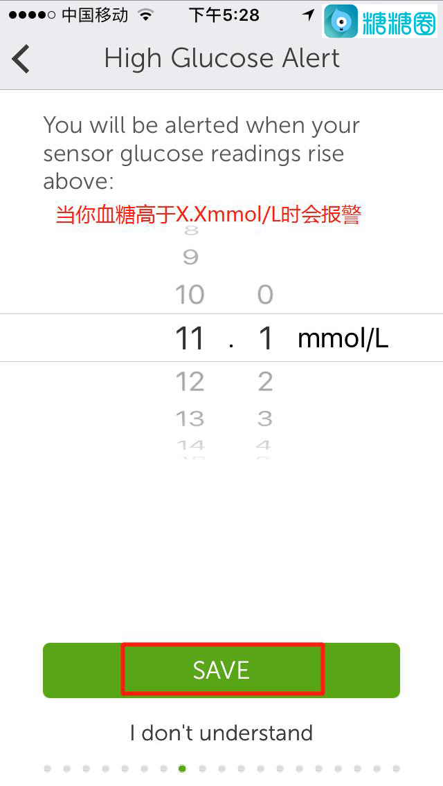 10.选择你的高低血糖临界值,点击“SAVE”保存;