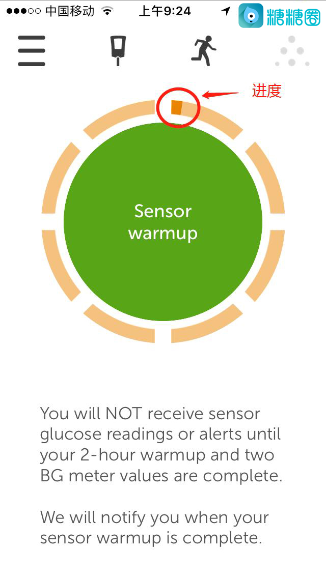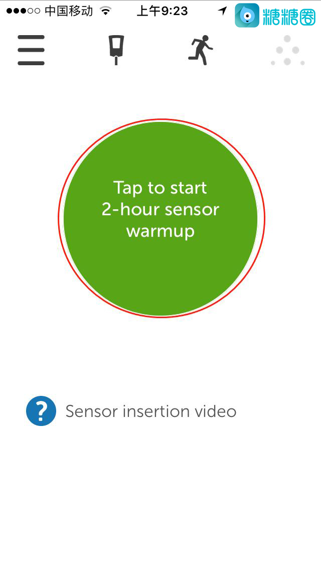 17.成功连接上后,点击绿色圆圈,开始启动探头(需等待两小时,期间探头还不能读取到你血糖数值);