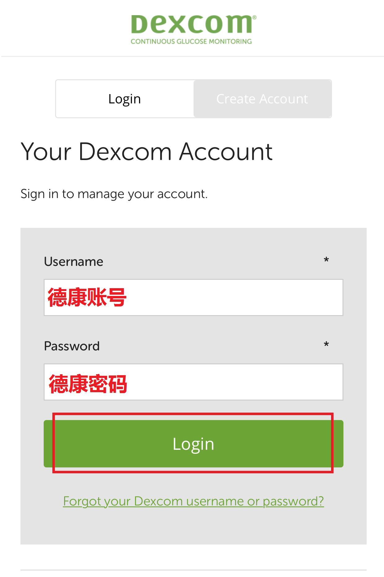 登录你所需查看血糖报告的德康账户密码