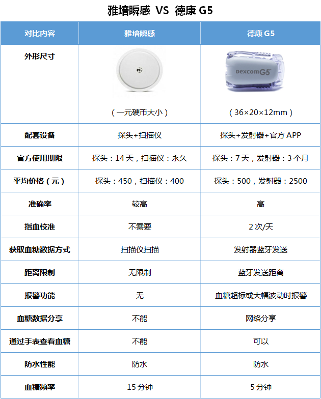 雅培瞬感因用户体验良好和价格亲民,自发布以来,就受到广大糖友的喜爱。然而,在搭建闭环时,这么受欢迎的产品为什么不被推荐使用?为了使糖友对这两种动态血糖监测系统(CGMS)有个全面的认识,根据各产品的官方公告[1,2],我们对比了雅培瞬感和德康G5(点击下表看详情)。