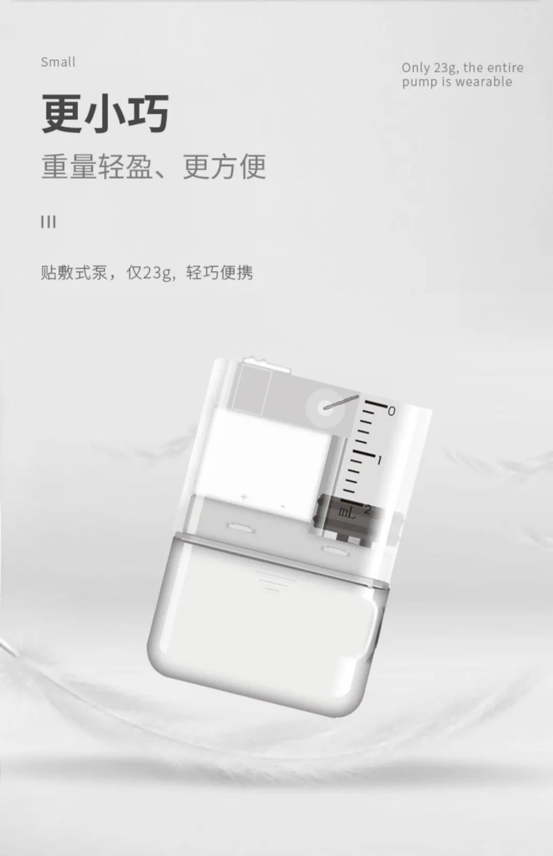 相比于传统型“BB机”大小的泵体,微泰贴泵的重量仅为23g,贴在身上是可以几乎忽略不计的重量。改善了用户体验,即使是夏天穿着清凉也能轻易“隐形”。