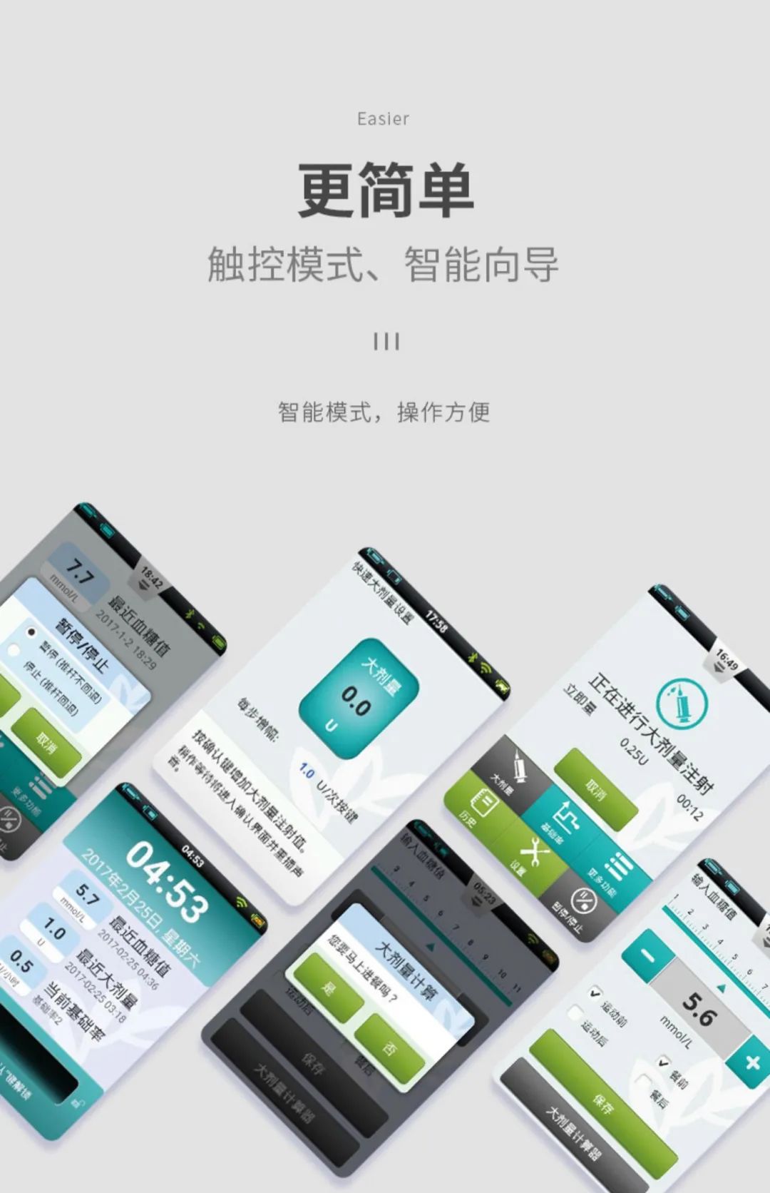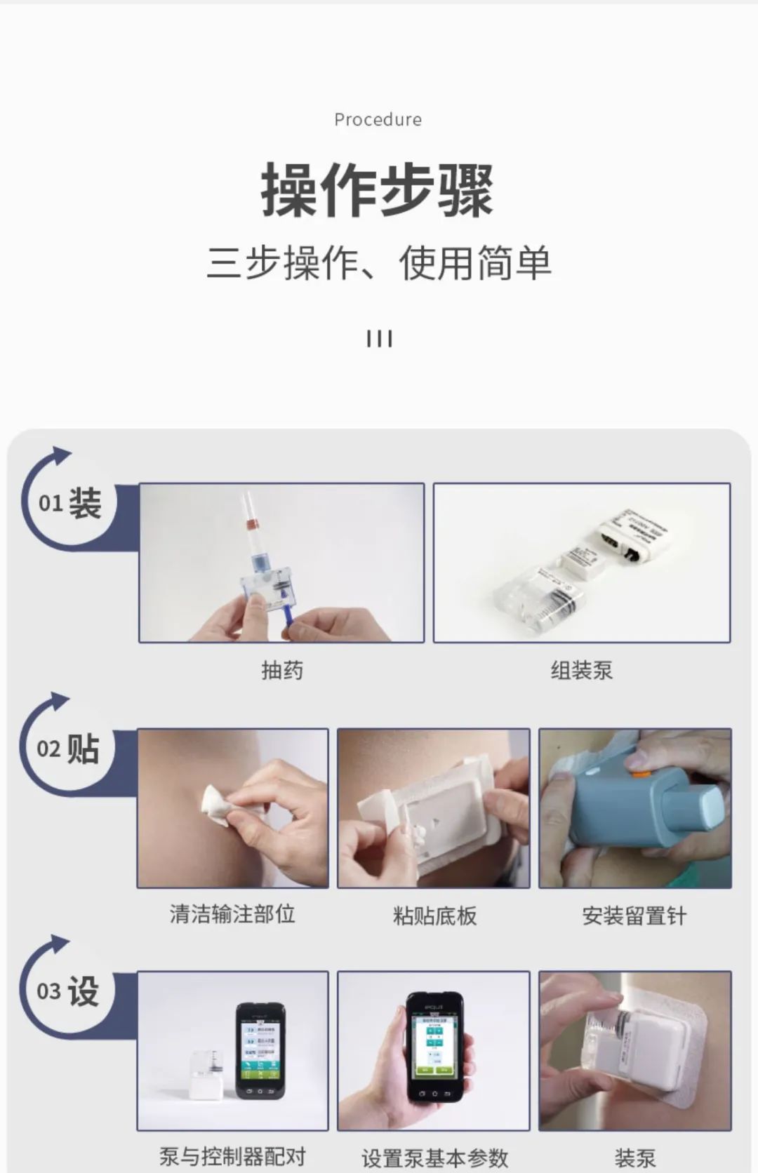 同时也避免了导管缠绕、胰岛素在导管里的损耗、导管位置高低影响输入精度等等一系列由导管带来的问题。患者不用担心开门关门时,导管被门把手勾住;也不用担心夏天穿着清凉,没有口袋放泵体。