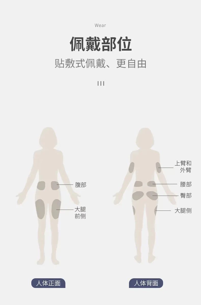 微泰贴泵的贴敷位置不局限于腹部,理论上图片所示位置都可以贴敷,每位用户可以根据自身情况自由选择适合自己的位置贴敷。比如想穿美丽修身的高腰裙的女性,就可以把贴泵贴在大腿前侧,让腰部曲线随着裙子的剪裁尽情展露。