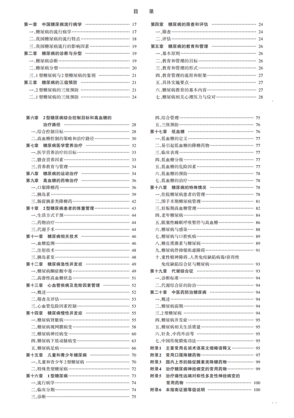 本指南共20章,涵盖了糖尿病的流行病学、诊断与分型、三级预防、筛查和评估、教育和管理等多个方面,为临床医师提供了规范化综合管理的指导。