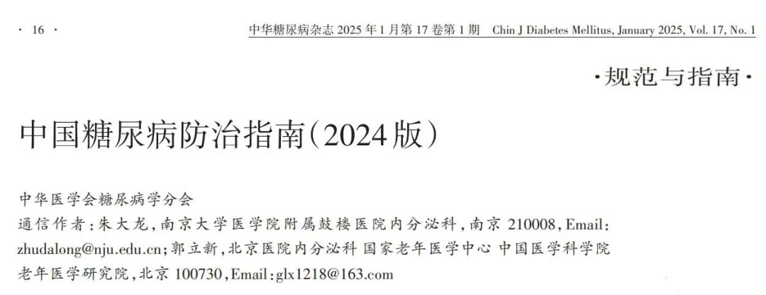 《中国糖尿病防治指南(2024版)》(下文简称“2024版指南”),于2024年12月31日在《中华糖尿病杂志》正式发布。